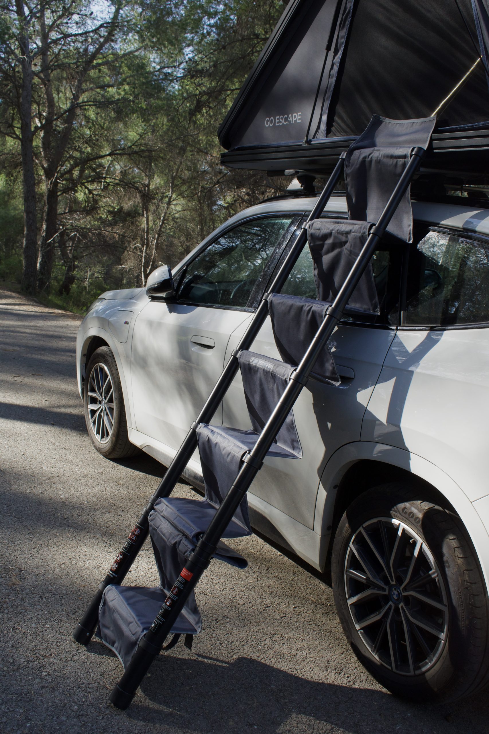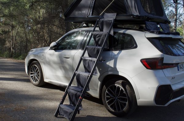 Ideal para quienes viajan con animales y buscan una solución cómoda, segura y práctica para acceder a la tienda de techo GO ESCAPE.
